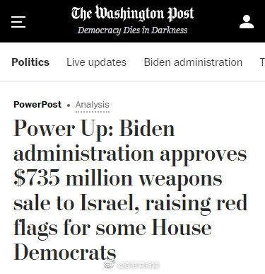 美媒:拜登政府批准向以色列出售價值7.35億武器
