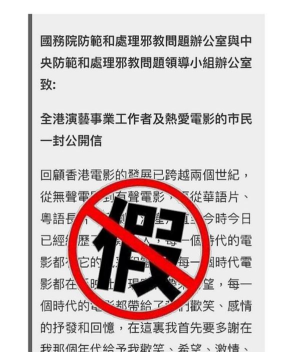 不過,據星島日報报道,國務院「防範和處理邪教問題辦公室」與「中央防範和處理邪教問題領導小組辦公室」是舊部門,在2018年機構改革後已併入中央政法委,不可能向香港一個界別人士發公開信,以這個機構名義發信,明显是假的。而且「公開信」還提及「黑暴革命」,完全不符合官方嚴格的行文規矩。