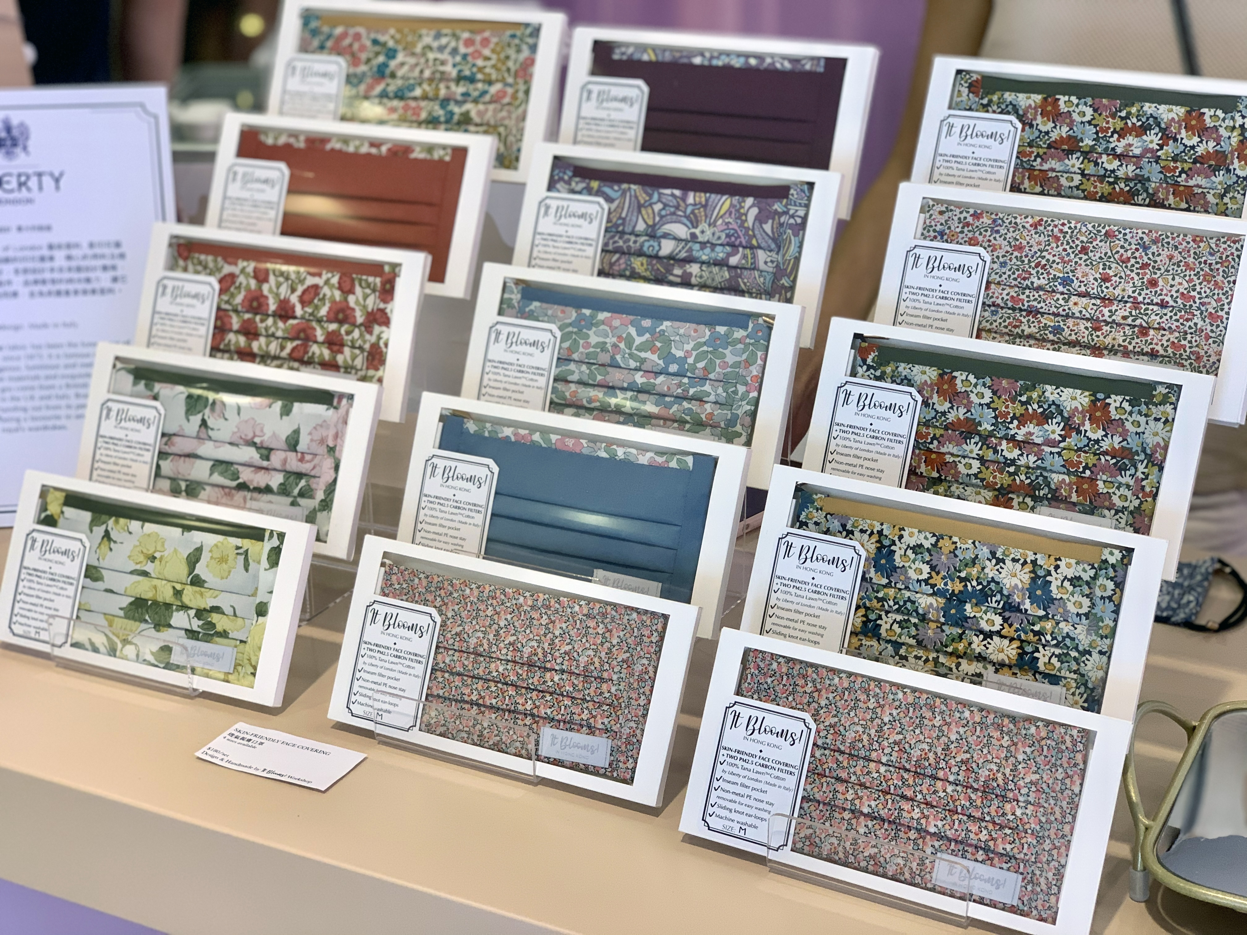 市集內最吸引記者的是It Blooms!店舖,店主Winnie告訴記者,他們在去年末創辦,之所以在疫情發生這麼久後才開店,是因為他們花了很多時間去測試及購買口罩布料。他們選用英國皇家御貢面料Liberty of London頂級布料人手製作布口罩,並在意大利生產製作。絢麗典雅的碎花圖案,讓人戴口罩也戴得心花怒放。品牌首次參與市集,今次推出限定兩款全新圖案的口罩Carline Rose Pink及Carline Rose Yellow和頭帶。
