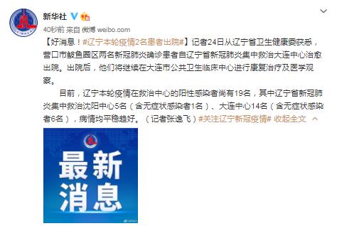 目前,遼寧本輪疫情在救治中心的陽性感染者尚有19名,其中遼寧省新冠肺炎集中救治瀋陽中心5名(含無症狀感染者1名)、大連中心14名(含無症狀感染者6名),病情均平穩趨好。