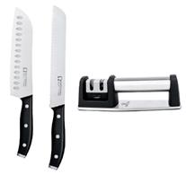 Omega 3件刀具套裝(18cm三德刀 + 20cm麵包刀 + 磨刀器)