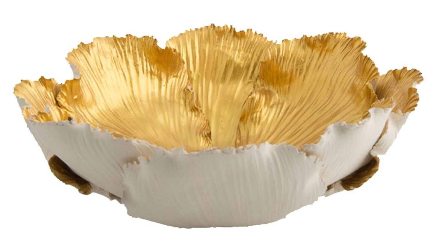 系列之一的The Cove相框,採用鯊革飾面搭配真皮襯裏,以曲線的黃銅邊框提升質感,是家庭合照或小幅裝飾畫的理想展示方式。金色Neno瓷碗呈現樹葉形態,背面的啞光釉面和正面的鍍金形成鮮明對比。Elephant Quartz水晶碗,碗沿上端坐一隻24K鍍金小象,增添可愛感。Akiko玻璃花瓶呈現斑駁的金色飾面,由工匠全手工打造。