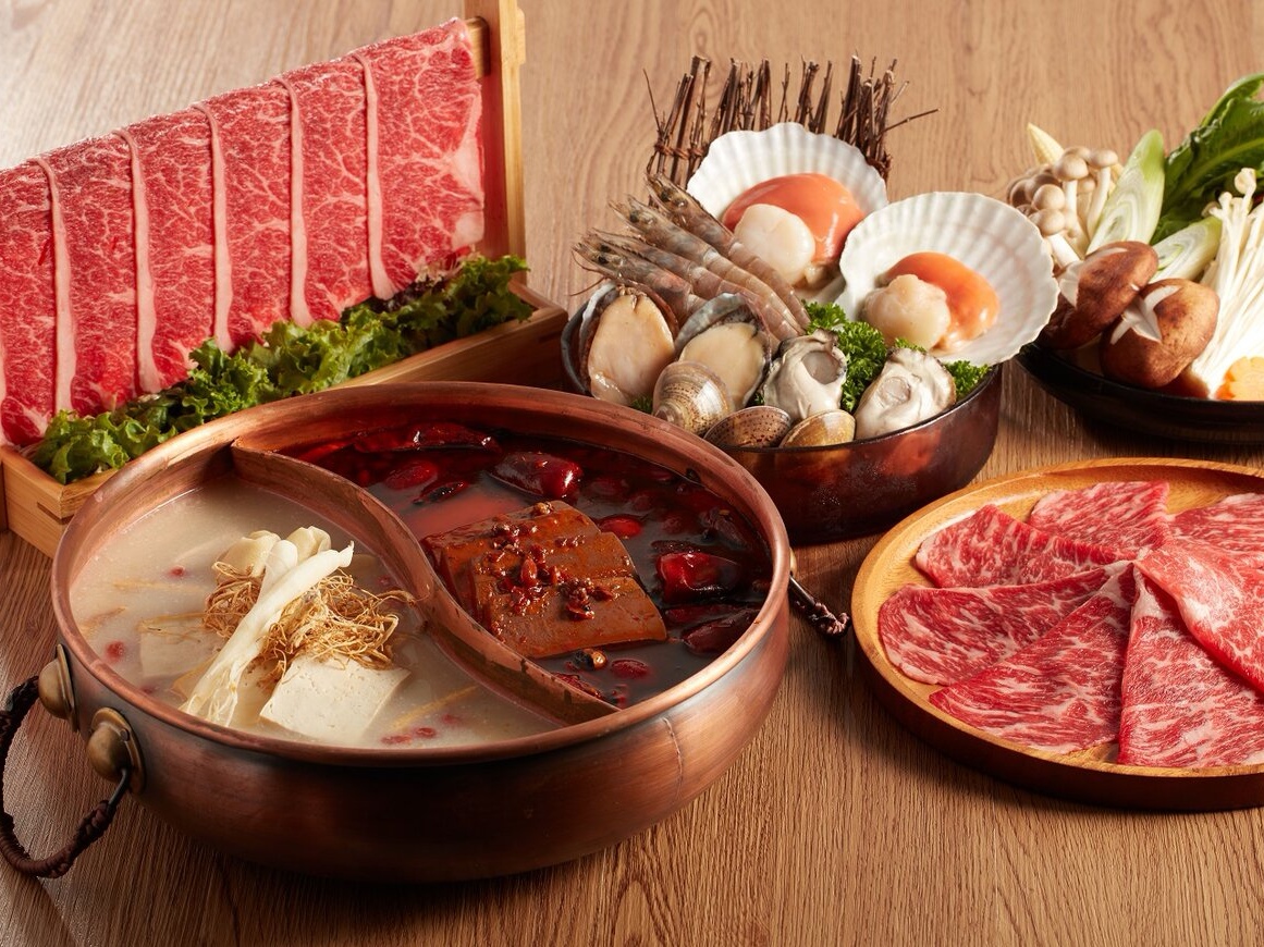 吃火鍋湯底重要,食材同樣是靈魂,犇殿提供多種高質進口牛肉套餐選擇,包括澳洲M7和牛、美國極黑牛三叉、美國黑毛和牛及美國牛胸腹板肉。澳洲的牛肉分為12等級M1-M12。M即Marble,牛肉的油脂花紋是決定性因素,油花越細密越勻稱,被視為越高級。M7澳洲和牛肉質香甜鬆軟,入口鮮嫩即化,務必一試。(記者:雲遜)