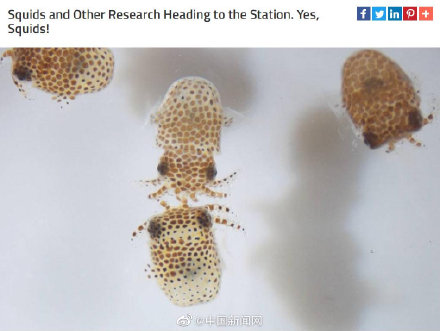中新網綜合報道,美國國家航空航天局(NASA)用太空探索技術公司的「獵鷹9」 號火箭把128隻小魷魚和5000隻微型緩步動物送入國際空間站。此舉目的在於研究微生物對微重力環境的反應。