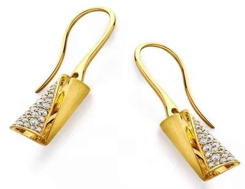 高冷系18K黃色黃金美鑽耳環