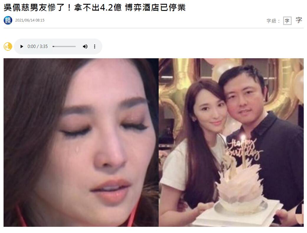 據东森新聞今日報道,在抵押豪宅後,台灣藝人吳佩慈男友——紀曉波的「酒店王國」也陷入危機,財務問題一重接一重。
