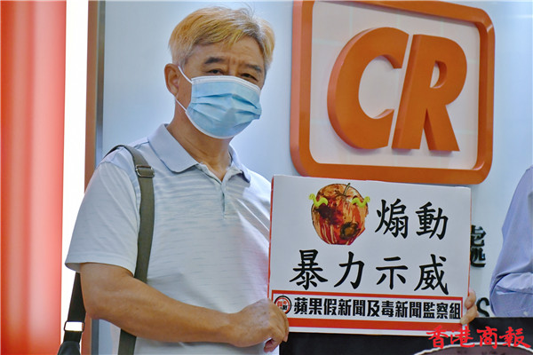 監察組指斥蘋果日報長期假借新聞自由,製作假新聞,操控輿論從事反中亂港非法目的,透過不同手段煽動市民反政府情緒及鼓吹參與反政府活動,破壞香港公共安全及秩序,嚴重威脅國家安全,而且壹傳媒創辦人黎智英長年積極勾結美英等國干預香港事務,又串連外國政府高官及政客反中亂港,抹黑特區政府依法施政,危害香港繁榮穩定。(记者:何家驊 摄影:馮瀚文 )