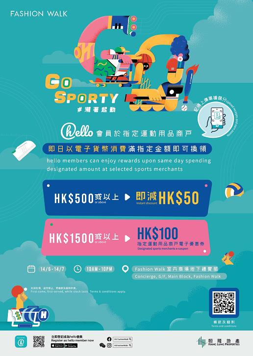 市民只要在上述商場消費,並下載商場手機應用程式登記成為hello會員,即可享多重消費優惠,包括即減港幣50元、消費滿指定金額即賞港幣100元運動用品商戶電子優惠券,優惠券適用於adidas、adidas Originals、Backpacker、FILA、NATIONAL GEOGRAPHIC、Nike、Onitsuka Tiger、PUMA、Sweaty Betty及Y-3等運動品牌。