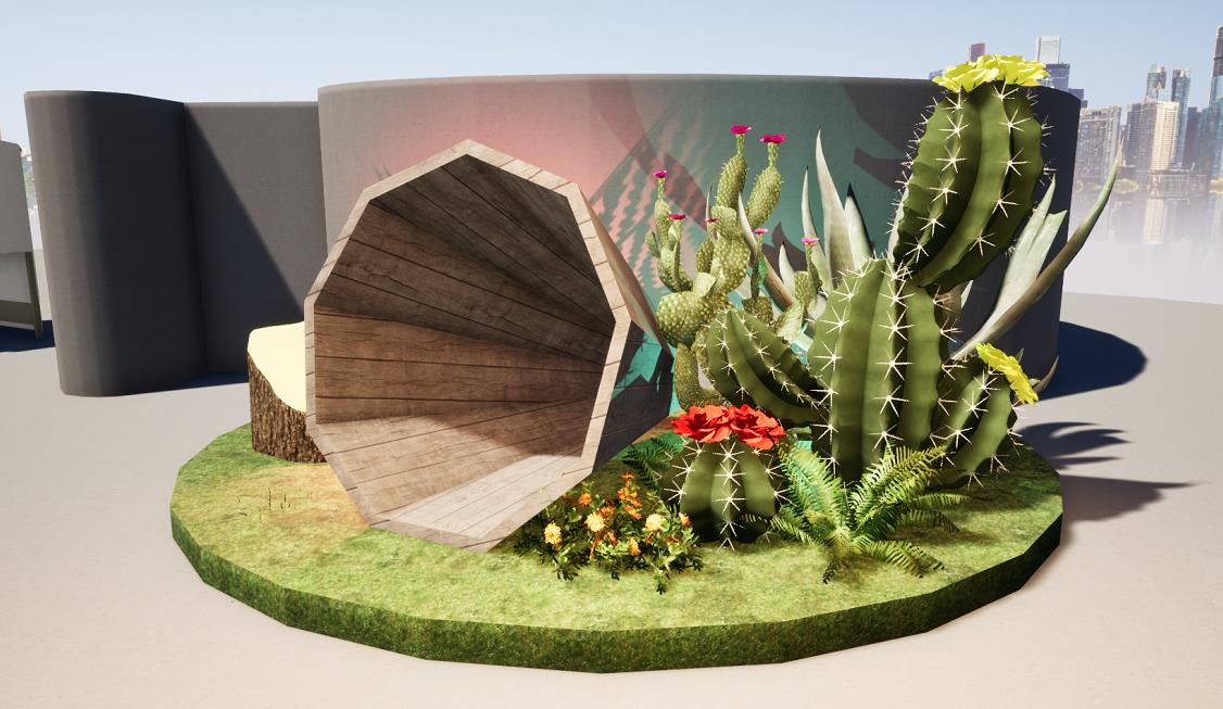三組森林藝術裝置分別以巨型仙人掌、蘑菇和蒲公英為設計主題,每組均配有一個約兩米高的木製擴音喇叭,為顧客帶來極佳的視覺藝術及感官體驗。
