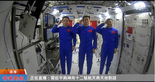 習近平:看到你們狀態很好、工作順利,大家都很高興。建造空間站,是中國航天事業的重要里程碑,將為人類和平利用太空作出開拓性貢獻。你們是新時代中國航天事業無數奮鬥者、攀登者的代表。希望你們密切配合,圓滿完成後續任務!祝你們在太空工作生活順利,我們在北京等候各位凱旋!