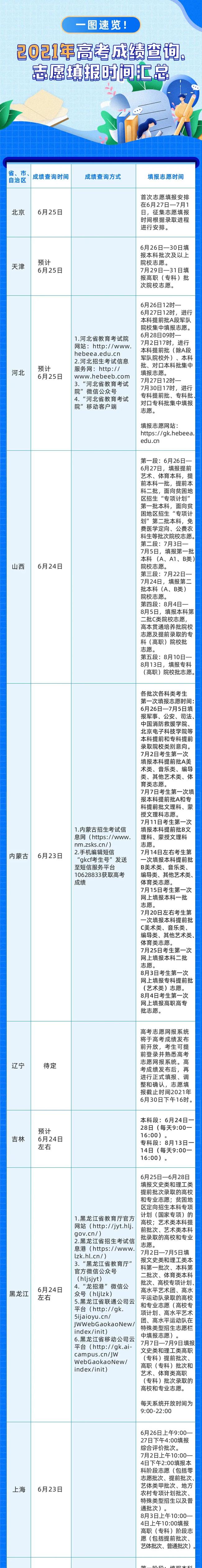 此外,如北京、天津、河北、江蘇、河南、湖北、湖南、海南、重慶、西藏、青海等十餘省份將集中在25日公布考生成績。