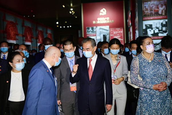 6月24日上午,國務委員兼外交部長王毅邀請外國駐華使節和國際組織駐華代表共同參觀「『不忘初心、牢記使命』中國共產黨歷史展覽」。