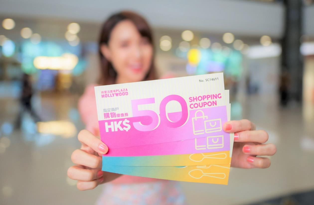 憑小冊子上的優惠券即可免費獲贈HK$50購物美食優惠券一張。