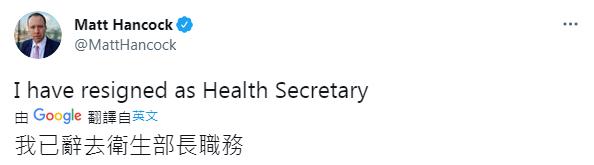夏國賢在致首相約翰遜的辭職信中表示,英國正為抗擊疫情付出巨大努力,他不希望專注於帶領國家走出危機的單一焦點,被自己的私生活影響,又向家人和心愛的人,以及為違反防疫指引致歉。