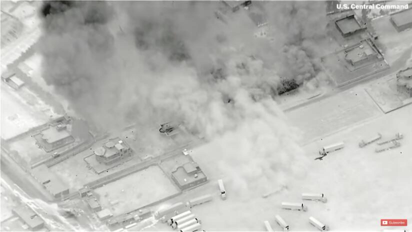美軍周日晚襲擊伊朗和敘利亞邊境的民兵組織軍事設施。視頻截圖