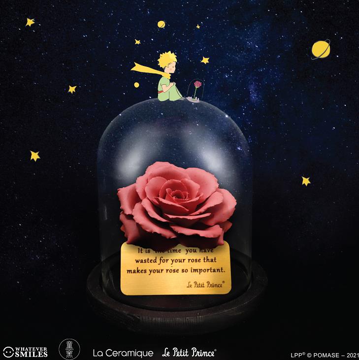 小王子玫瑰花陶藝工作坊/$2000,陶瓷玫瑰雕塑燒製後以高清玻璃罩包裝再配置實木底座,參加者可選擇刻上小王子精選語錄。