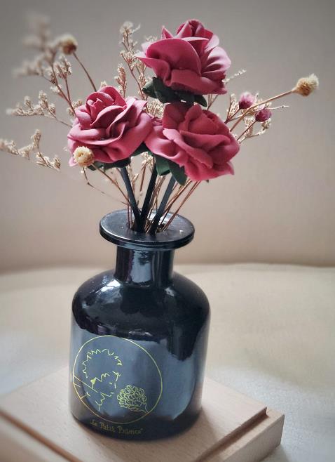 小王子奶油黏土花藝工作坊/$750,工作坊會附上小王子香薰瓶,參加者可利用自己製作的奶油黏土玫瑰花變作擴香家居擺設,更可獲得小王子證書一張。