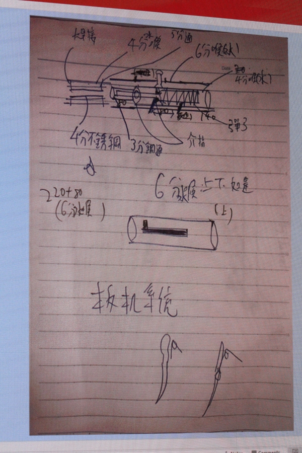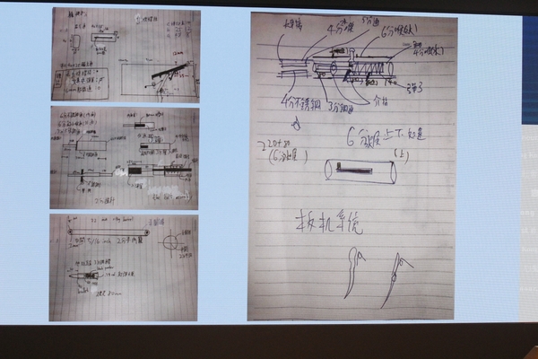 警方檢獲的證物,包括放大器、撞鎚、板機、槍管、火藥釘槍彈和製造槍械草圖。