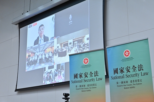 香港國安法頒布並實施即將一周年,公務員事務局今日(29日)在政府總部舉辦國家安全講座,由清華大學法學院王振民教授透過視像形式主講香港國安法,並與出席講座的高級公務員回顧和展望香港國安法的落實情況,約120人出席講座,包括常任秘書長、部門首長、公務員事務局首長級人員和訓練主任職系人員。