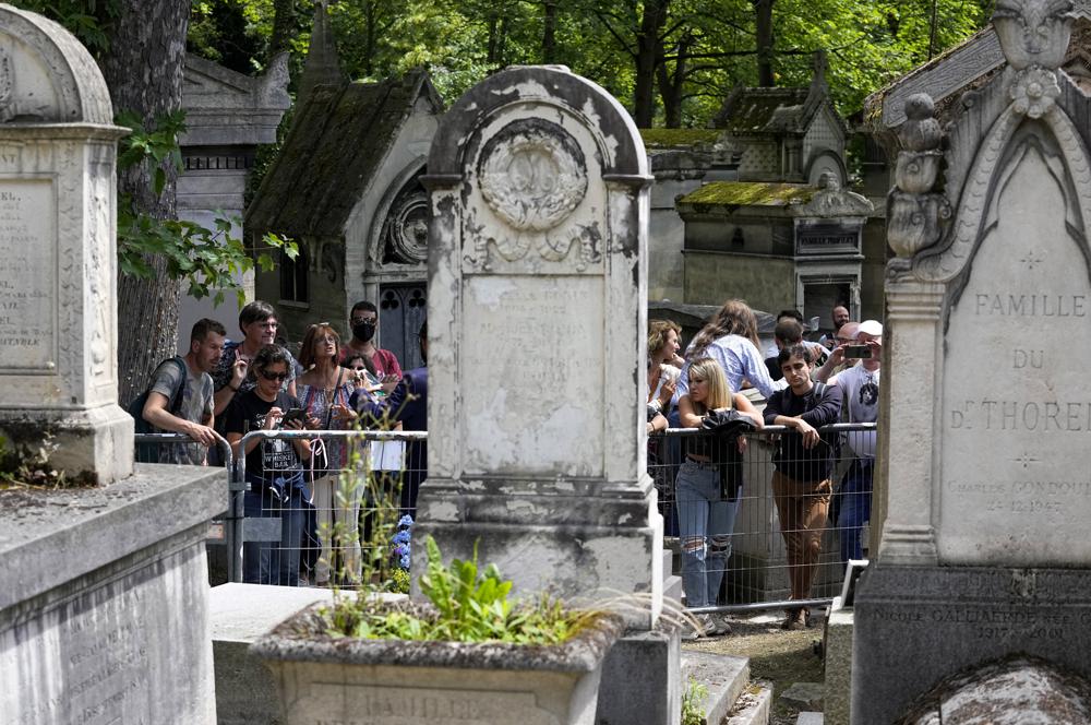 當地時間7月3日,來自法國和世界各地的搖滾音樂愛好者來到巴黎東部的拉雪茲神父公墓(Pere Lachaise Cemetery),「搖滾詩人」佔·摩利臣(Jim Morrison 內地譯吉姆·莫里森)的長眠處,紀念這位1960年代傳奇歌手逝世50周年。