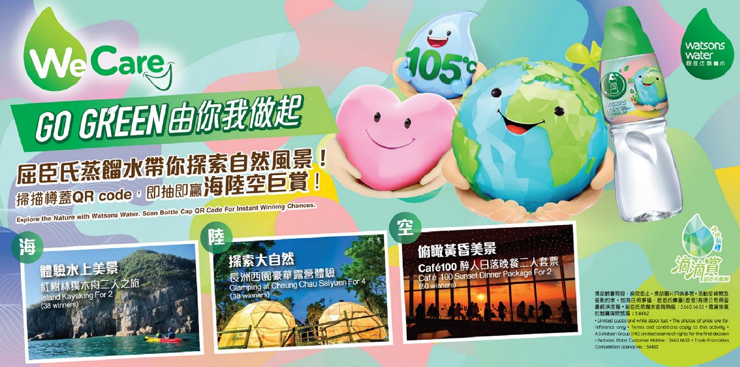 「盛夏連環大激賞」禮品豐富,包括長洲西園豪華露營體驗、紅樹林獨木舟二人之旅及Café100 醉人日落晚餐二人套票。其中豪華露營體驗有共28份中型南非營四人用(建議零售價HK$1380)和共10份觀星圓拱屋四人用(建議零售價HK$2800);共38份紅樹林獨木舟二人之旅(建議零售價HK$1560);共50份的Café100醉人日落晚餐二人套票(建議零售價HK$888)。只要買一支瓶裝水,就能欣賞香港美景,與摰親好友留下美好夏日回憶。 (記者:Janice)