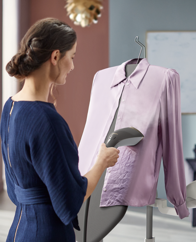 推出的升級版8000系列熨板蒸氣掛熨機,結合蒸氣掛熨和傳統熨斗兩大功能,提供完善的熨燙方案。產品配備多角度人體工學熨衣板,可隨意調校熨衣角度,如垂直、傾斜角度或完全水平,想怎樣熨都可。