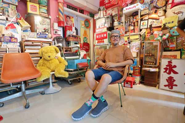 然為何他只對60年代至80年代的生活物品有興趣,感情甚至濃烈至要買樓安置?「因為它們與回憶息息相關!小時住元朗新區 (即元朗邨,1966年落成時名為「元朗徙置區」) 12樓,記得有幾層拿來做公共單位,9樓阿婆有零食、汽水賣,有些單位租給人賣馬票、剪髮、打麻雀。阿爸不准落球場玩,驚我畀黑社會『恰』,至多是同人打波子,踢下西瓜波,最開心可以落樓下牛記食雲吞麵,啲鳳爪又好好食,最大娛樂係去同樂、光華戲院睇戲,食下花生、魷魚。」