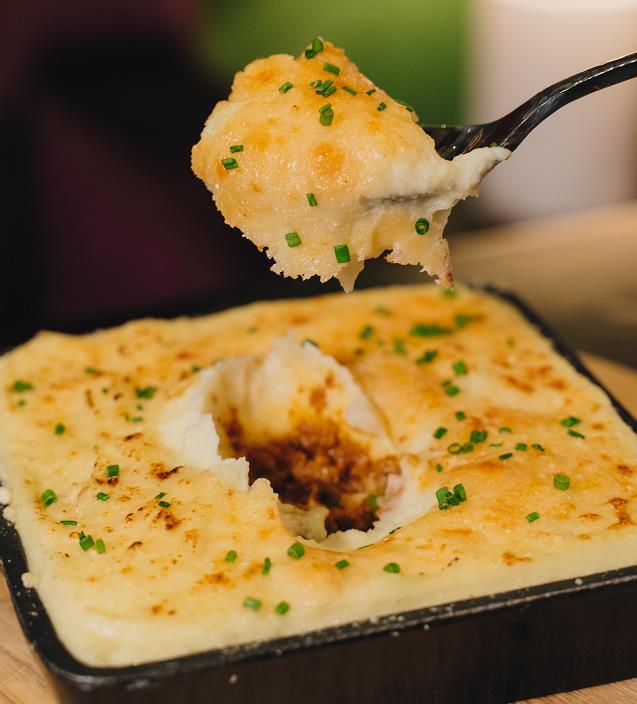 餐廳招牌牧羊人批,是以薯蓉作批皮的一款肉批。