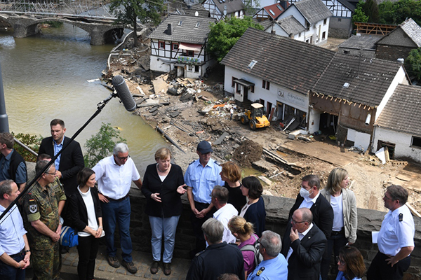 德國總理默克爾在周日(18日)前往萊法州勘災後,周二(20日)再度前往該國西部本輪洪災受影響最嚴重地區之一的北威州。她當天承諾將為受災地區提供及時且無官僚主義阻礙的援助,同時表示將致力於推動聯邦、各州和縣市共同在國家層面制定一個長期性的重建計劃。