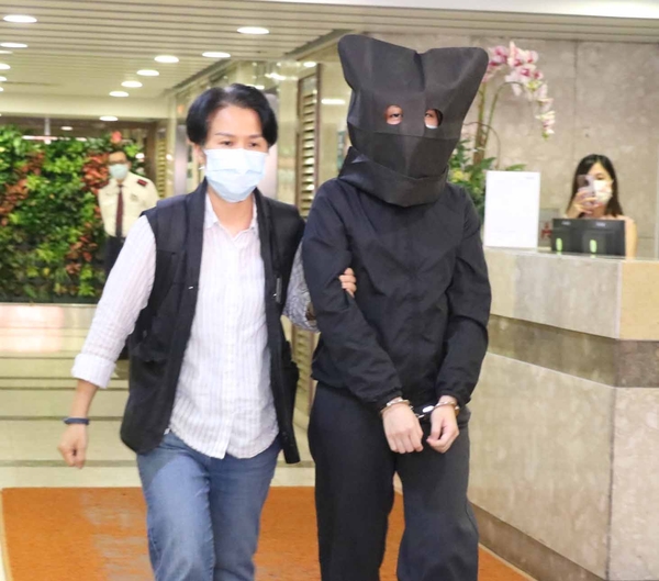其中一名疑犯被押解到沙田圓洲角路搜查