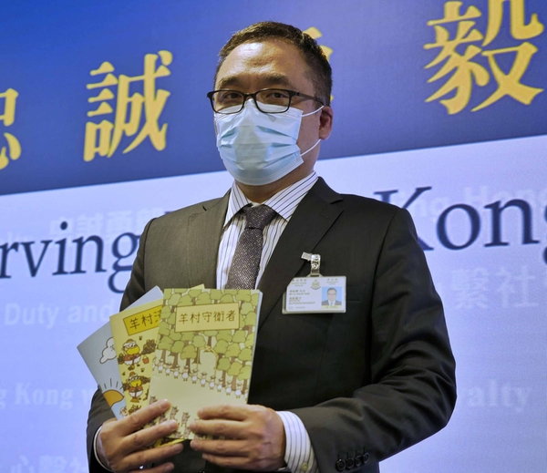 警務處國安處高級警司李桂華展示3本涉案繪本。