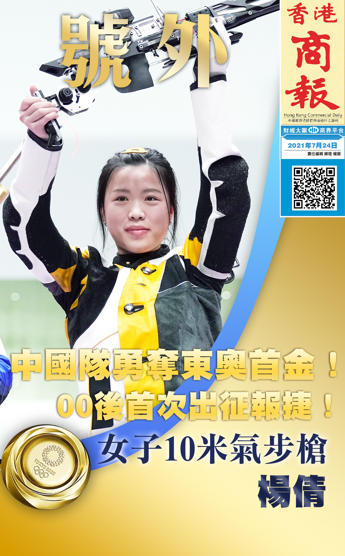 北京時間7月24日,2020東京奧運會射擊女子10米氣步槍決賽在朝霞射擊場結束爭奪。中國00後運動員楊倩最後一槍絕殺,最終以251.8環創奧運會紀錄,為中國代表團射落東京奧運會的首枚金牌。
