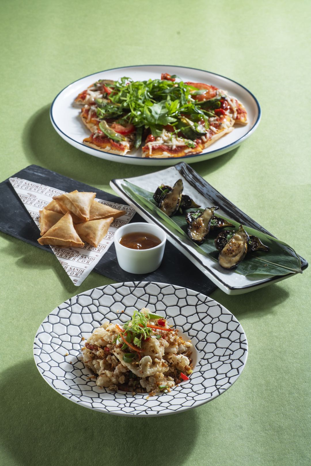 主菜方面,最令人驚喜的一定是避風塘式炒素鮮魷,廚師利用爽嫩椰子肉製成「鮮魷」,脆炸後加入椒鹽炸蒜,微辣又惹味。素漢堡同樣值得一試,植物肉配上純素車打芝士、純素蛋黃醬,健康無負擔。另有素薄餅,加入牛油果、純素水牛芝士、火箭菜、番茄乾及香濃番茄醬焗製。