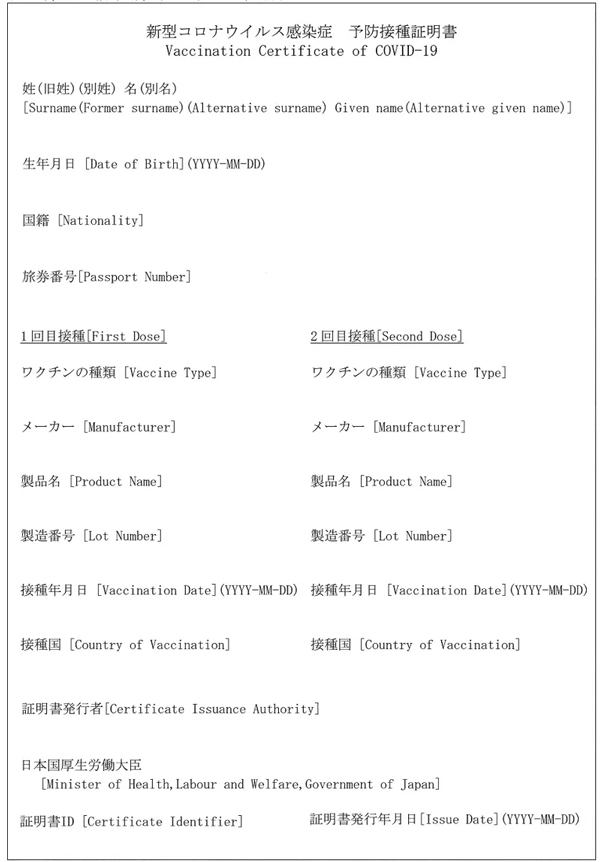 日本今起發行紙本的「疫苗護照」。厚生勞動省網站