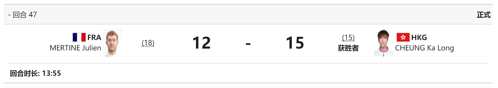 面對法國的馬田,張家朗首局領先8比6,雖然馬田第二局曾經追成10平,不過張家朗未有給予對對手機會,末段接連得分,最終贏15比12,成功晉級。蔡俊彥出戰加拿大的雲哈士打,開局一度落後0比4,幸而迅即進入狀態,結果以15比10後上反勝,與張家朗一同打入16強。至於早前舉行的64強賽事,張小倫面對德國的辛尼達,在領先14比8的大好優勢下,最終以14比15不敵對手,無緣32強。(圖源:新華社資料圖)