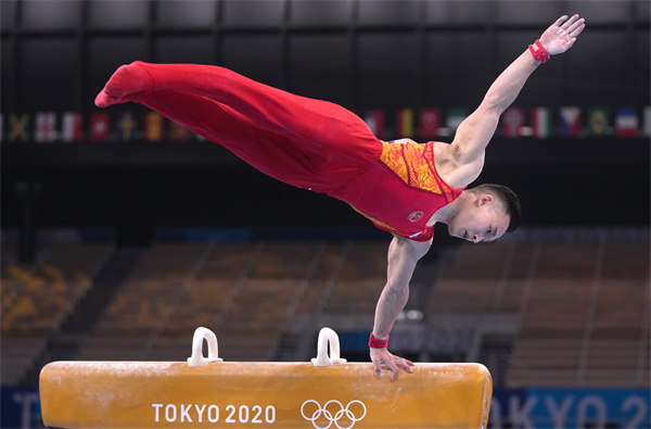 北京時間7月26日,中國男子體操隊選手肖若騰、鄒敬園、孫煒、林超攀參加東京奧運體操男子團體決賽,為中國隊奪得一枚銅牌。(圖源:新華社)
