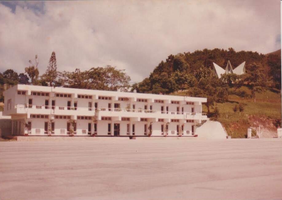 昔日皇后山軍營樓房及閱兵場地,後方山丘的建築物就是印度廟,蓮花外形一如今天所見。 Nam Sing Thapa 提供圖片