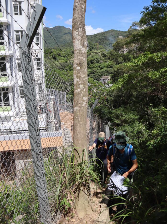 進廟路途崎嶇,左方為差不多完工的山麗苑。