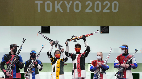 楊倩、楊皓然合力贏得10米氣步槍混合團體金牌。