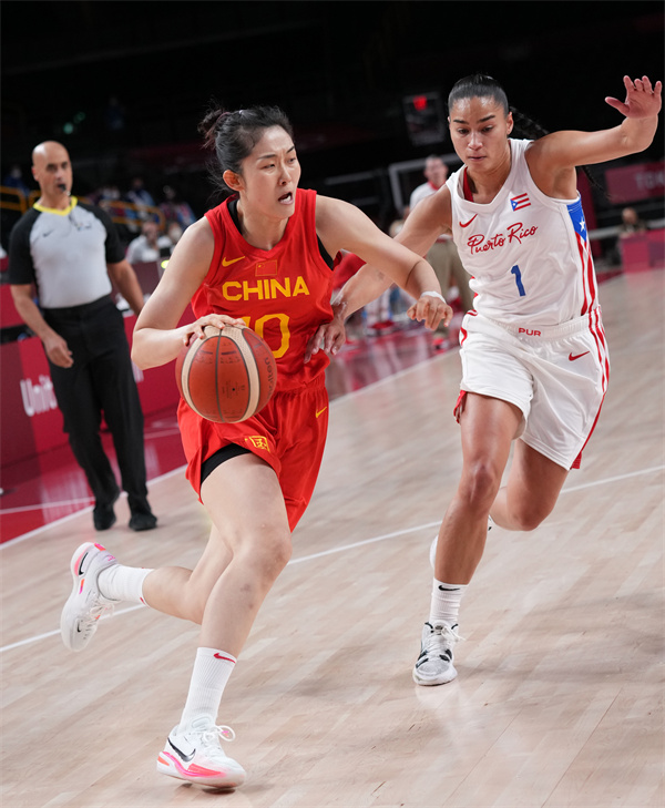 7月27日,當日,在東京奧運會女子籃球預賽C組比賽中,中國隊以97比55戰勝波多黎各隊。(圖源:新華社)