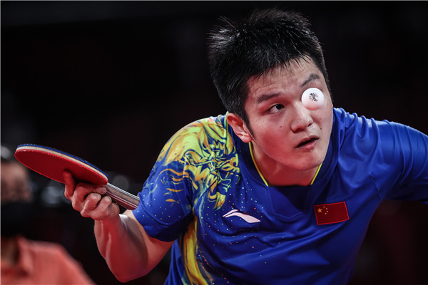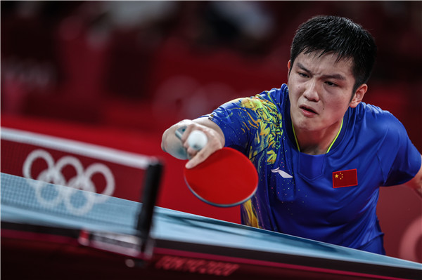 在今日東京奧運會乒乓球男子單打四分之一決賽中,中國選手樊振東以4比0戰勝韓國選手鄭榮植,晉級四強。 (