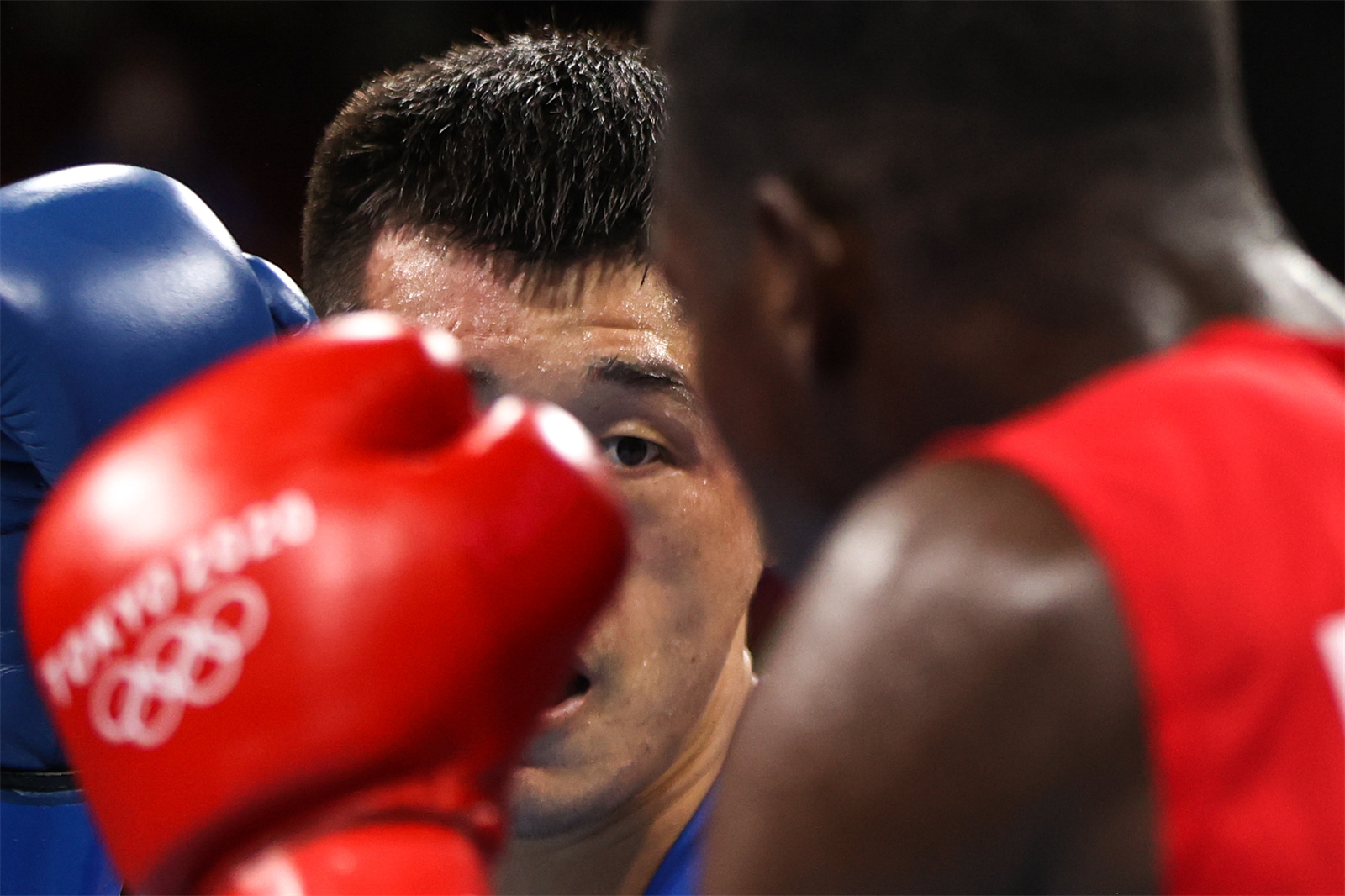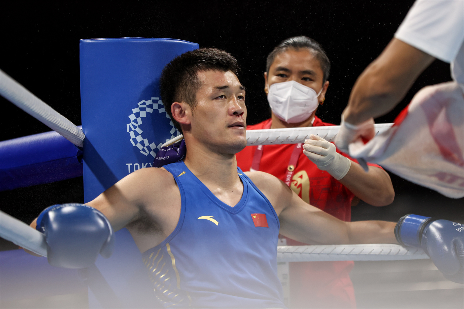 東京奧運會拳擊男子75-81公斤級八分之一比賽中,中國選手陳大祥不敵巴西選手馬沙杜,無緣下一輪。新華社記者 歐東衢 攝