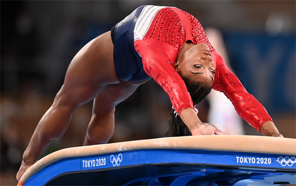 美國隊選手西蒙·拜爾斯宣布退賽,圖為她在跳馬比賽中。新華社