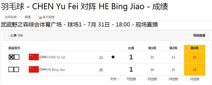北京時間31日,在東京奧運會羽毛球女子單打半決賽中,中國選手陳雨菲以2:1戰勝隊友何冰嬌,晉級決賽。印度選手辛杜和中國台北選手戴資穎將爭奪另一個決賽席位。祝賀陳雨菲!何冰嬌也是好樣的!