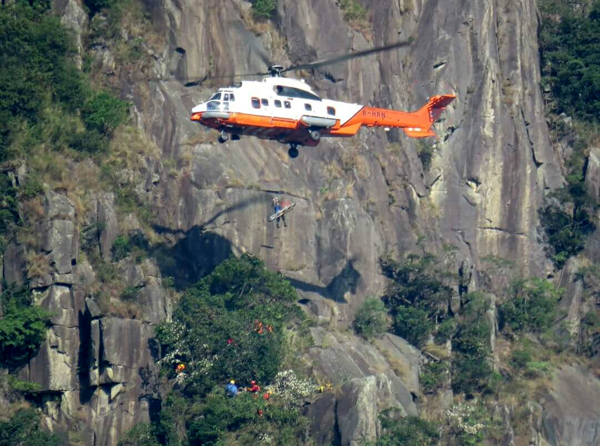 陳溢晃倡慎用直升機,免耽誤真正需要者。圖為2017 年飛行服務隊直升機在飛鵝山救起傷者。資料圖片