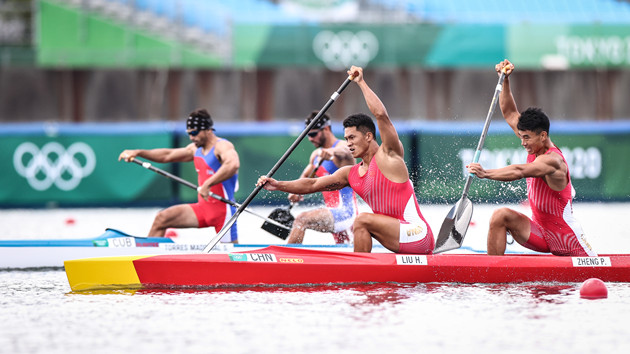 上午10點54分,男子1000米雙人靜水皮划艇迎來決賽。中國選手劉浩和鄭鵬飛將衝擊金牌。劉浩和鄭鵬飛的組合以3分37秒783的成績位列小組第一,晉級半決賽。他們曾在2019年斬獲多站世界盃分站賽冠軍,其中在杜伊斯堡站中力克兩屆世錦賽冠軍、德國組合尤爾/克雷奇默,創造該項目當年世界最好成績。