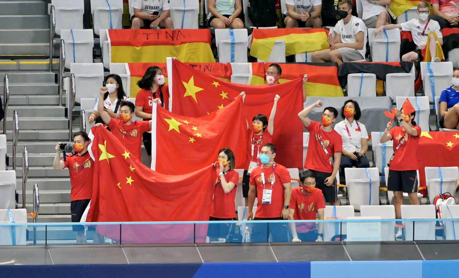 此外,中國选手陳芋汐拿到銀牌,这是中國隊本屆東奧會第9次包攬金銀牌。