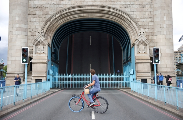 倫敦塔橋橫跨泰晤士河,兩端分別是倫敦金融城及薩瑟克地區。塔橋封閉,導致橋的兩端都排起等待過橋的汽車長龍。