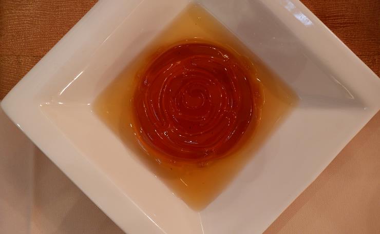 甜品方面,杜師傅選用Salley’s Garden其中最富特色的奇蘭金駿眉製作出茶香果凍,奇蘭金駿眉味道層次分明,製作出的果凍具花香蜜韻,職員提醒為了更能感受茶香味,可率先品嘗它,在夏日大汗淋漓的時候,沉浸在充滿回甘香氣及清涼感的果凍中,配上一杯熱茶,原本躁動的心也跟着平靜了;
