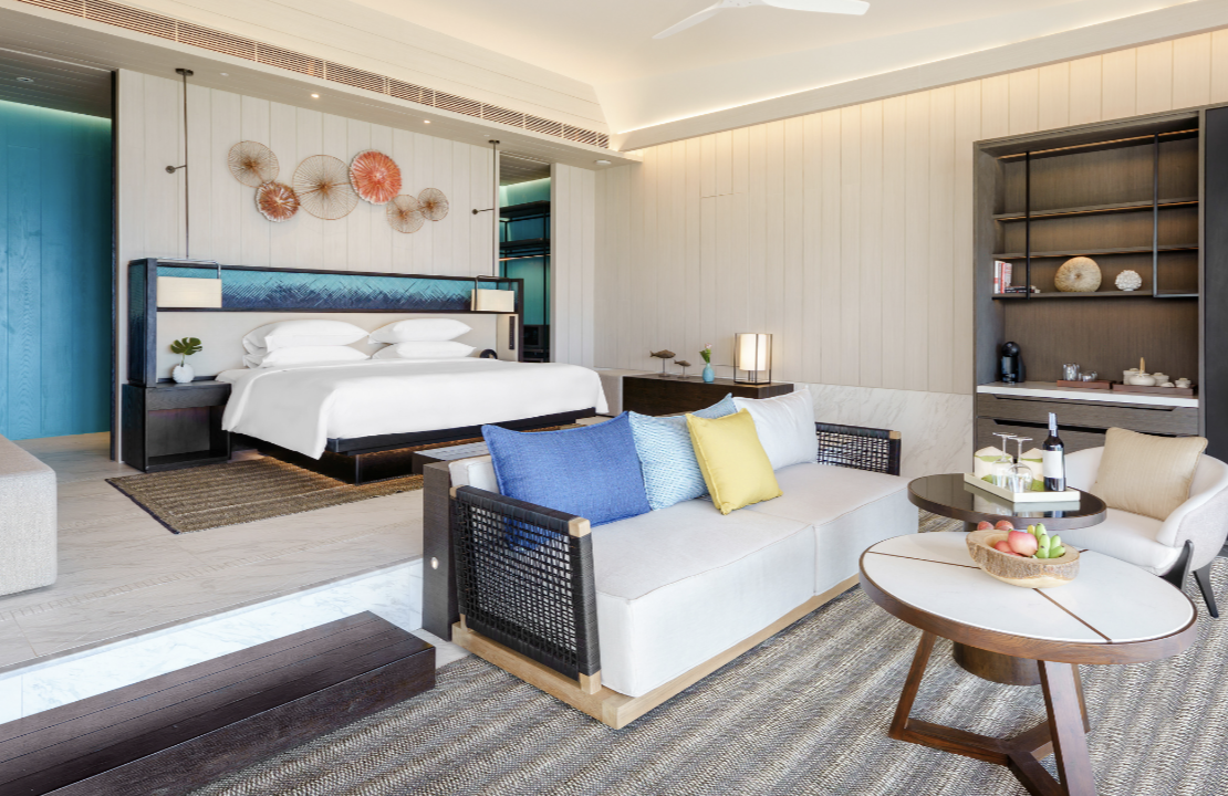 近期,凱悅酒店逆市進駐蘇梅島,坐落北查汶地區,距離機場僅8分鐘車程,共設有140間客房,包括24間套房和別墅,所有房型均設有私人陽臺,圍繞600餘株受保護的望天樹及椰樹而建,同時又提供直通半私家海灘的通道,整間度假酒店就是打造令人懷念的「陽光與海灘」度假風情。7棟海灘泳池別墅室內設計洋溢簡約現代風,以中性色調搭配海洋風格裝飾及清新的藍色,Chill得好像世外桃源一般。